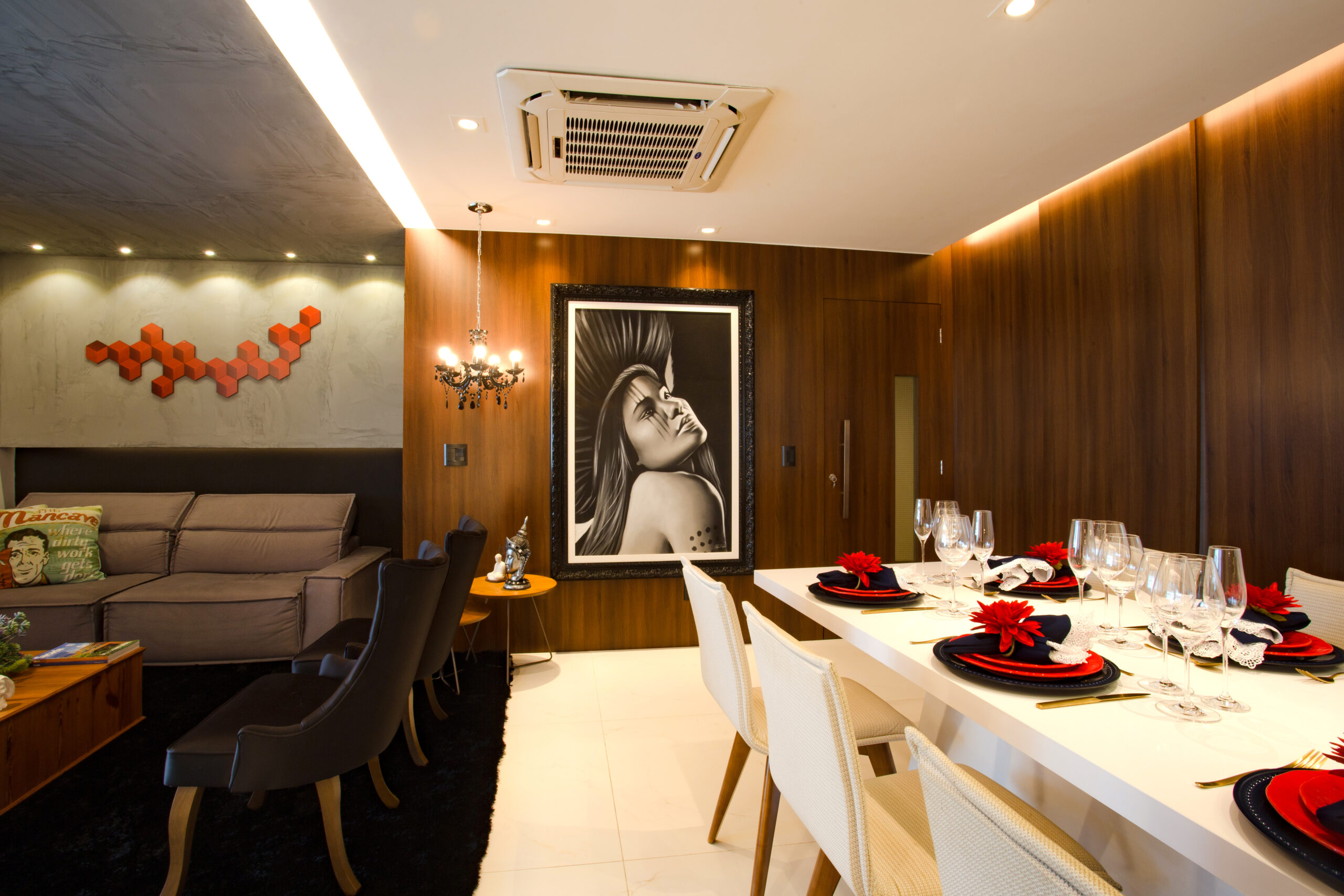 Este apartamento reúne sofisticação e conforto em perfeita harmonia. A integração dos ambientes amplia a sensação de espaço e luminosidade natural, enquanto a marcenaria sob medida em paleta elegante valoriza cada canto com praticidade e estilo. A iluminação estratégica destaca texturas e acabamentos, criando uma atmosfera acolhedora e moderna. Um lar pensado para quem busca funcionalidade sem abrir mão do charme e da personalidade em cada detalhe – o equilíbrio ideal entre praticidade e conforto!
